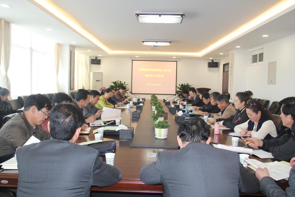 3月8日下午,《欧宝娱乐官方app学报》2017年编委会工作会议在朝阳校区厚德楼4层会议室召开。学报编委会主任、校长丁德科,党委副书记赵伏友、副校长程书强、李海龙、权雅宁出席,学报编委及报刊社全体同志共40余人参加会议。通过对学报工作的总结与展望,编委们在讨论交流中认为:我校是我党最早创建的红色高校,也是百年“青马”红校、艺术师范名校、创业创新福校,学报要继续为学校的教学科研和学科建设服务,坚定创业创新为核心的渭华照金精神,稳中有进,以新入编一家核心期刊和教育部名刊为目标,全力办好学报。