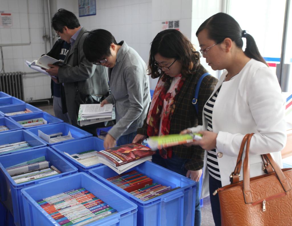 4月25日,2017全国高校教材巡展活动在我校博识楼一层大厅举办。来自高等教育出版社、科学出版社、外语教学与研究出版社、北京师范大学出版社、清华大学出版社、中国人民大学出版社、西安交通大学出版社、电子工业出版社、西南师范大学出版社等30余家出版单位展出4000余种教材,涉及文学、理学、工学、管理学、经济学、教育学、艺术学等多个学科,吸引了200多名教师观看。教师们在现场填写教材申请表,出版社免费提供教材样书。