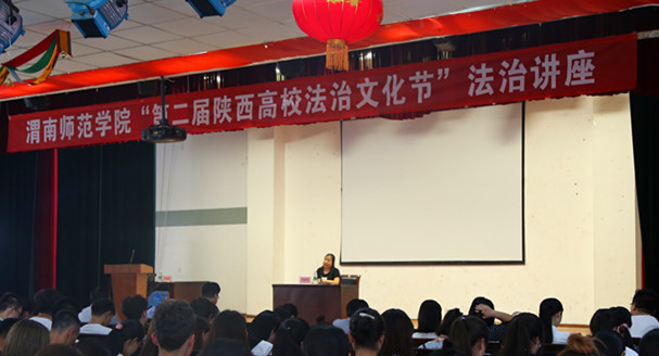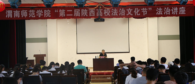 6月14日下午,我校在学校一餐三楼多功能厅举办了一场生动的“第二届陕西高校法治文化节”法治讲座活动。此次活动是在学校政策法规与发展规划处的协调指导下,由学工部具体组织开展。政策法规与发展规划处处长姬晨、学工部部长王俊安与相关部门工作人员、全体专兼职辅导员以及全校各班团支书一起聆听了本次讲座。
