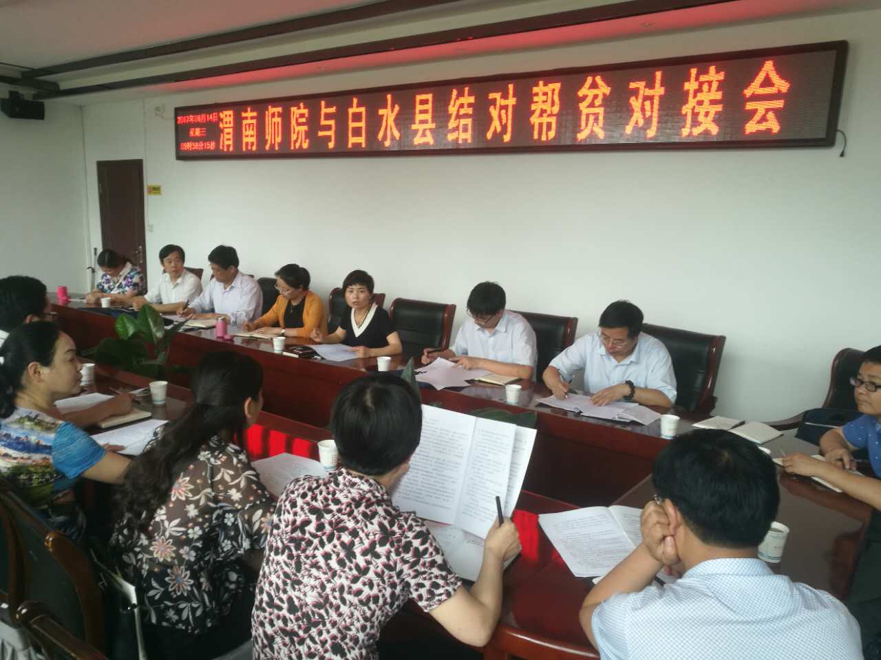 6月14日,副校长、扶贫工作办公室主任、扶贫培训学院院长权雅宁,校长助理、党政办公室主任、扶贫工作办公室副主任韩小卫,党政办公室副主任、扶贫工作办公室副主任李铁丁,校工会副主席、扶贫工作办公室副主任王对启,继续教育学院院长、扶贫培训学院副院长史天胜,教务处副处长张萍等一行赴白水县调研并召开结对帮扶工作推进会。