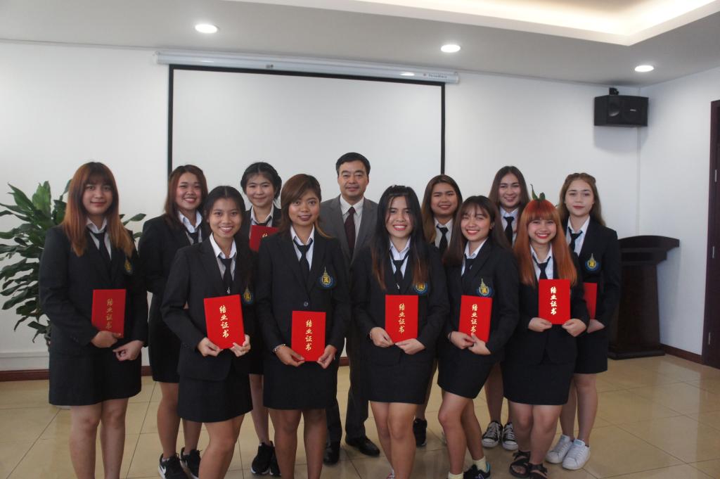 典礼伊始,参加典礼的老师和同学们通过观看视频回顾了两校之间的合作与交流,及泰国学生在我校学习和生活的点点滴滴。泰国宋卡王子大学普吉分校教师代表Prapasara老师讲话。随后,学生代表陈文丽发言,她代表33名泰国学生,对欧宝娱乐官方app老师所付出的努力和悉心照顾表达了深深的感谢之意,同时,向与会人员汇报了他们在我校学习汉语所取得的成绩,并表达了自己对源远流长、博大精深的中国文化的崇敬之意。