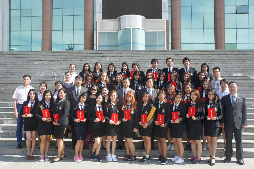 之后与会领导、教师与泰国学生在厚德楼前合影留念。
