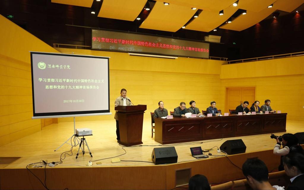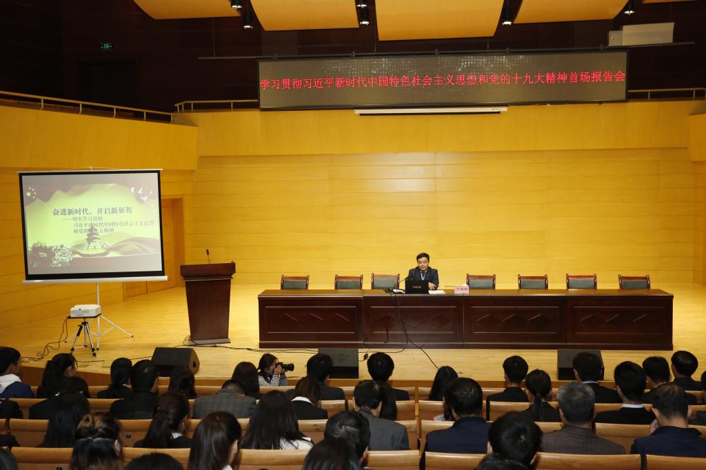 10月30日下午,欧宝娱乐官方app学习贯彻习近平新时代中国特色社会主义思想和党的十九大精神首场报告会在逸夫楼华金音乐厅举行。报告会由院长卓宇主持。