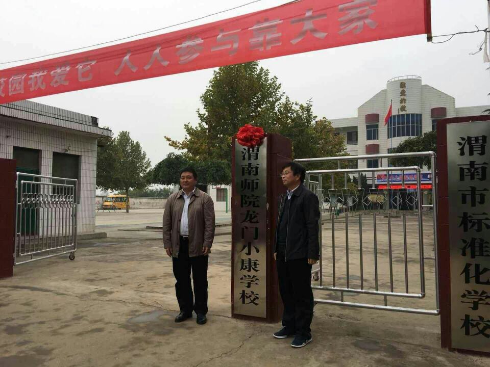 卓宇一行首先来到龙门村小学,与张红林共同为“渭南师院龙门小康学校”揭牌,同时为龙门小康学校捐赠了4万元的教育教学设施设备。并到学校进行考察调研,详细了解了目前学校运行情况。