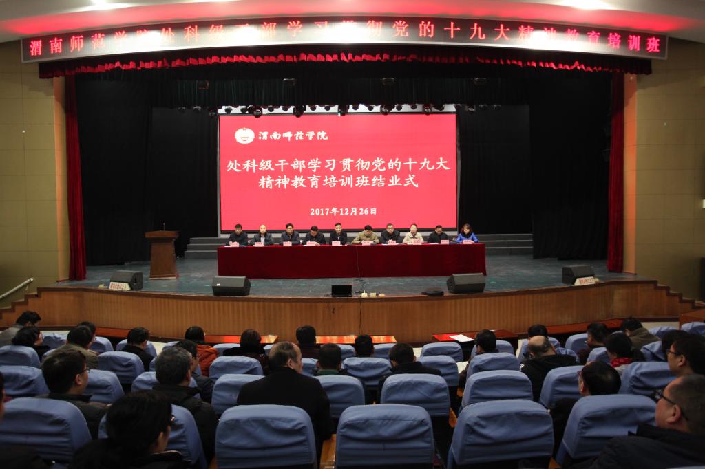 为深入学习贯彻习近平新时代中国特色社会主义思想和党的十九大精神,落实中央和省委强调的领导干部要“带头学、带头讲、带头干”的要求,欧宝娱乐官方app于12月21日至26日举办了处科级干部学习贯彻党的十九大精神教育培训班。学校领导及全校200余名处科级干部参加了此次培训。