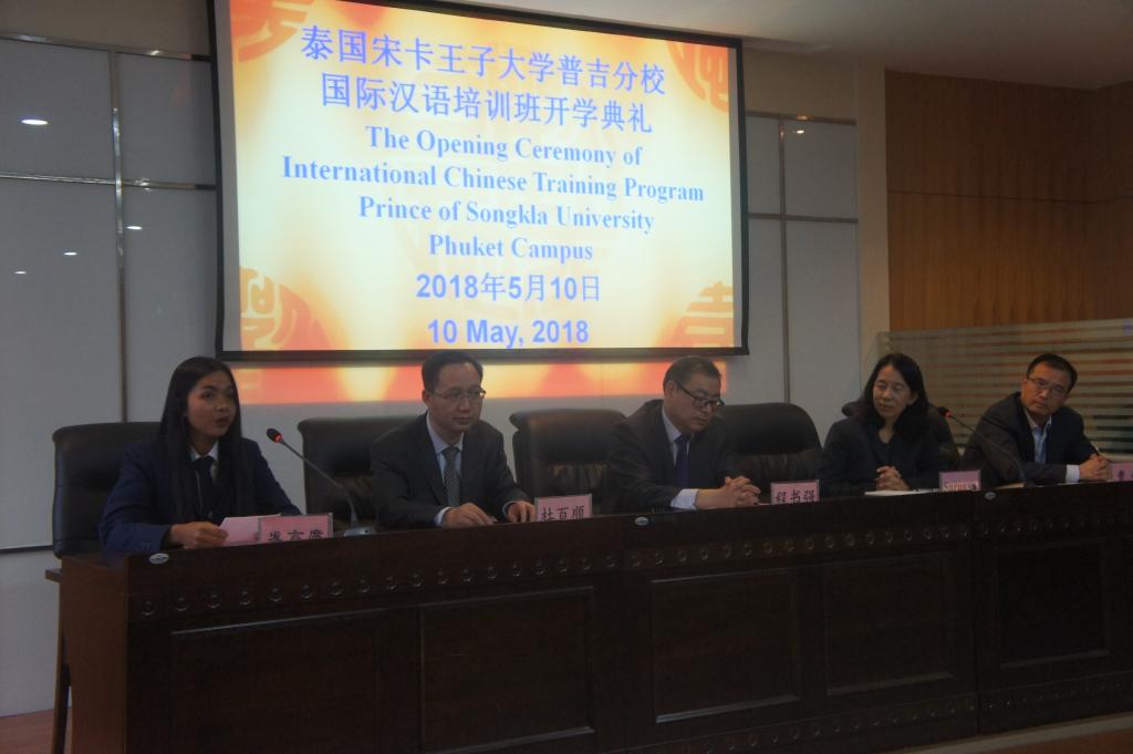 5月10日下午,我校举办泰国宋卡王子大学普吉分校国际汉语留学生班开学典礼。泰国宋卡王子大学普吉分校带队教师Saranya、Nareerat,副院长程书强、教务处副处长张萍、人文学院院长曹强以及代课教师等参加典礼。开学典礼由国际合作与交流处处长杜百顺主持。