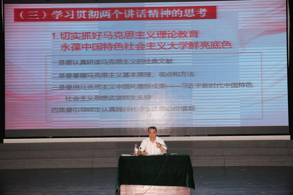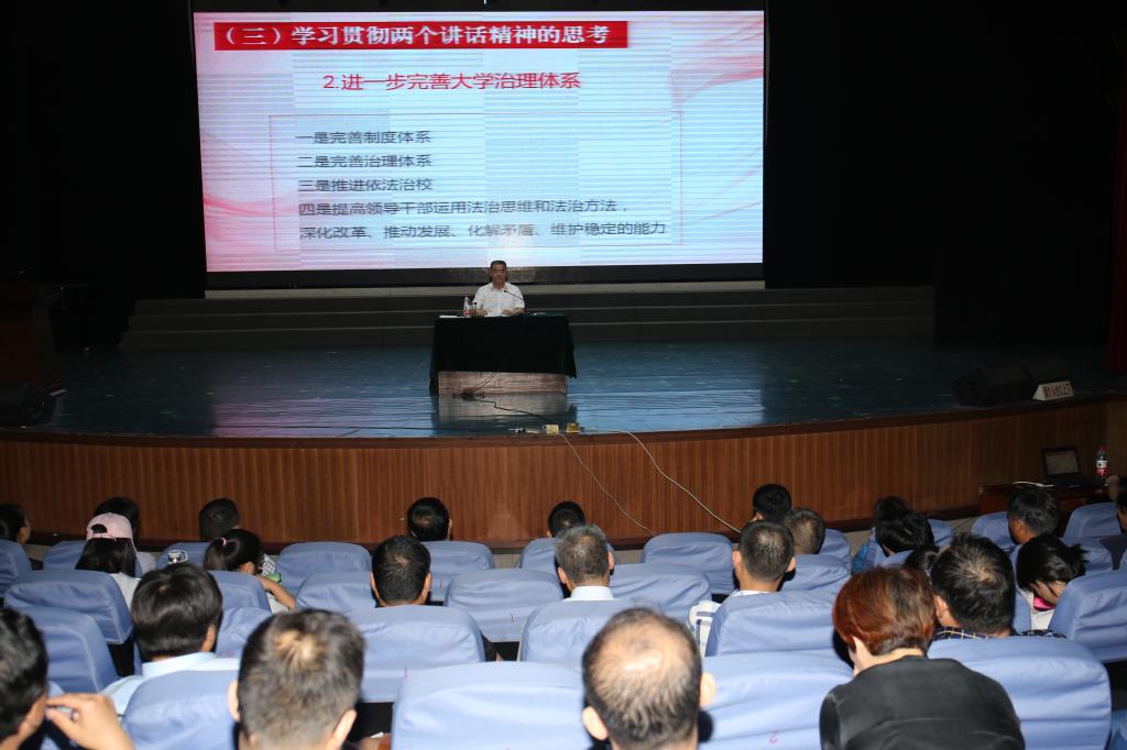 6月11日下午,陕西高校“学习新思想千万师生同上一堂课活动”在欧宝娱乐官方app陶然楼演艺厅举行,陕西省高教工委讲师团成员、西北政法大学党委书记宋觉作了《深入学习习近平教育思想 努力提高办学治校能力和人才培养质量》的专题报告。报告会由欧宝娱乐官方app院长卓宇主持,学校领导、各单位负责人、师生代表共计300余人聆听报告。