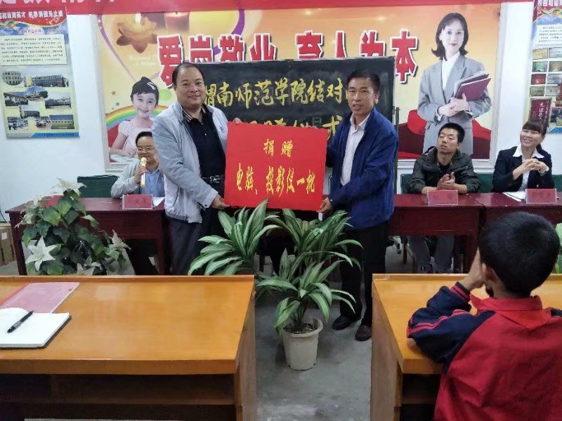 按照学院的总体安排,从2017年开始结对帮扶白水县,计划用三年时间,从智力、教育、科技、人才、信息、文化、民生、志愿等方面、几十个项目进行帮扶,此次捐赠属于项目之一,是继2017年后的第二次捐赠,学校向冯雷中心校捐赠多媒体设备两套、电脑及桌椅5套。