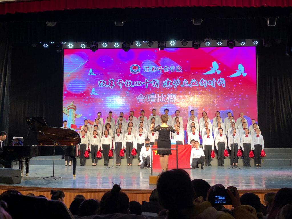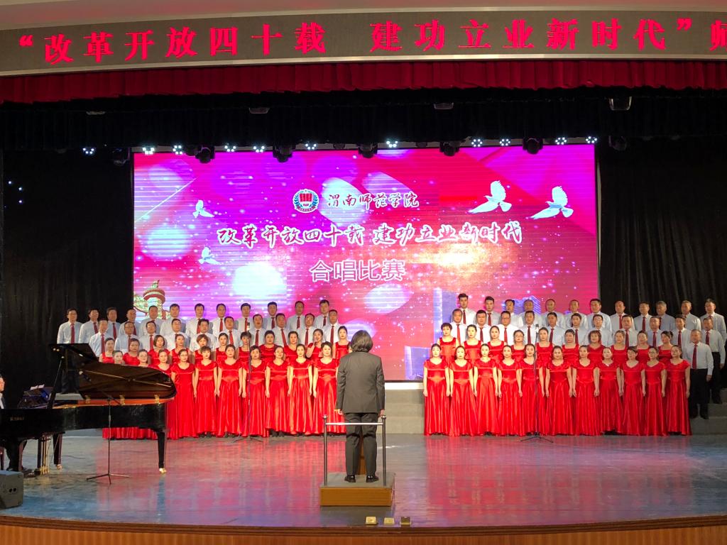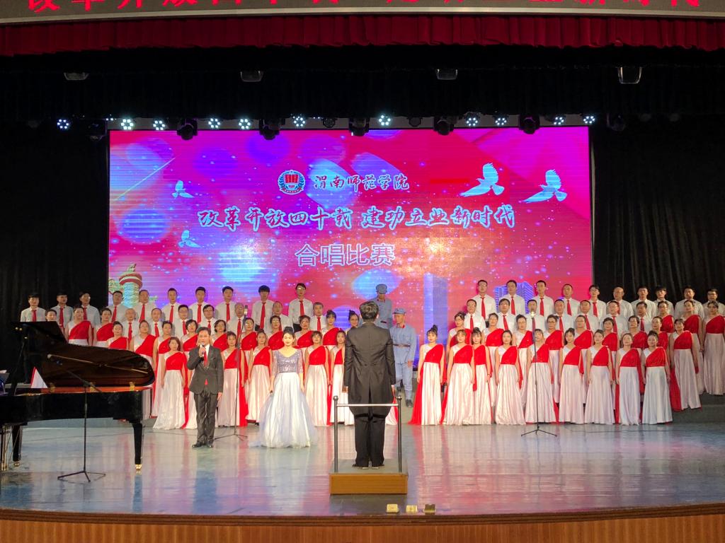 此次合唱比赛以“改革开放四十载 建功立业新时代”为主题,突出全员性、群众性,从校领导到普通教职工,从教师到学生,从行政部门到二级学院,各单位都积极参与其中。《走向复兴》《在希望的田野上》《再唱山歌给党听》《春天的故事》《歌唱祖国》《不忘初心》《中国进入新时代》等一首首脍炙人口、广为传唱的红色歌曲响彻校园。