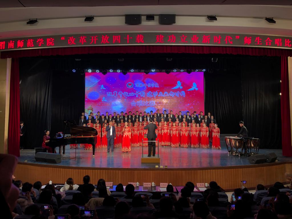 一首首经典爱国歌曲,在师生们的用心演绎下勾勒出一幅幅美丽的山河画卷,讴歌了祖国改革开放以来所取得的巨大成就,抒发了党员干部、教职工的爱党爱国、爱岗敬业的奋进精神。比赛自始至终贯穿着感怀和奋进的基调,一首首歌曲时而深情追忆,时而激情澎湃,整场比赛精彩纷呈、高潮迭起,展现了师生良好的精神风貌。