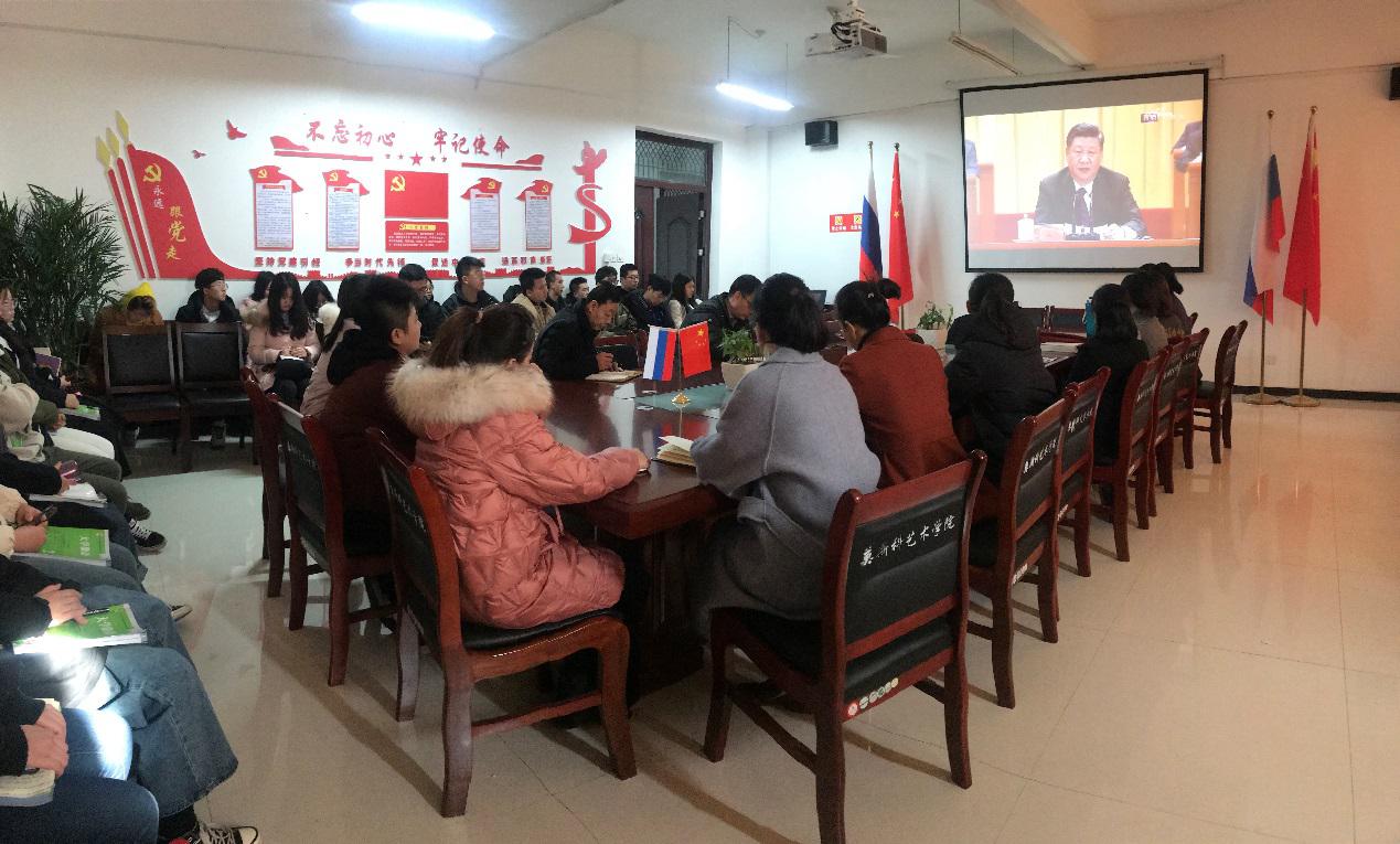 12月18日上午10时,庆祝改革开放40周年大会在人民大会堂举行。我校全体师生员工热切关注,各二级单位党委、党总支、直属党支部分别在18个分会场组织师生第一时间通过广播、电视、网络等多种途径、多种形式观看大会直播,参与观看教职工达650人。学校领导班子成员带头在厚德楼四楼会议室机关一总支分会场集中收看直播盛况。