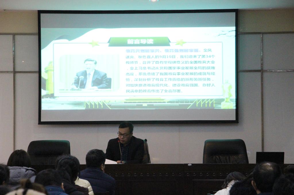 12月27日,欧宝娱乐官方app学习贯彻全国教育大会精神中层干部及教师骨干专题讲座在逸夫楼二楼孔子学堂举行。宝鸡文理学院冯飞龙教授应邀作题为“坚持立德树人铸就教育之魂 弘扬育人精神振兴教育伟业”的专题讲座,全校科级干部、马克思主义学院部分骨干教师聆听讲座,党委宣传部部长李明敏主持会议。