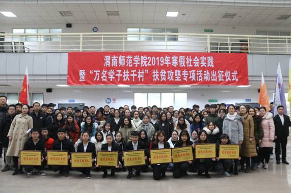 为深入学习习近平新时代中国特色社会主义思想和党的十九大精神,扎实推进我校脱贫攻坚工作。1月10日下午,我校在福慧图书馆举行主题为“青年大学习 青年新作为 建功新时代”的2019年寒假社会实践暨“万名学子扶千村”脱贫攻坚专项活动出征仪式。校党委副书记任健,学工部部长王俊安,宣传部部长李明敏,校团委副书记姚明亮,校团委办公室主任刘娟宁出席出征仪式,各二级学院主管学生工作领导、团总支书记和实践队负责人及队员200余人参加,出征仪式由校团委干部肖飞主持。