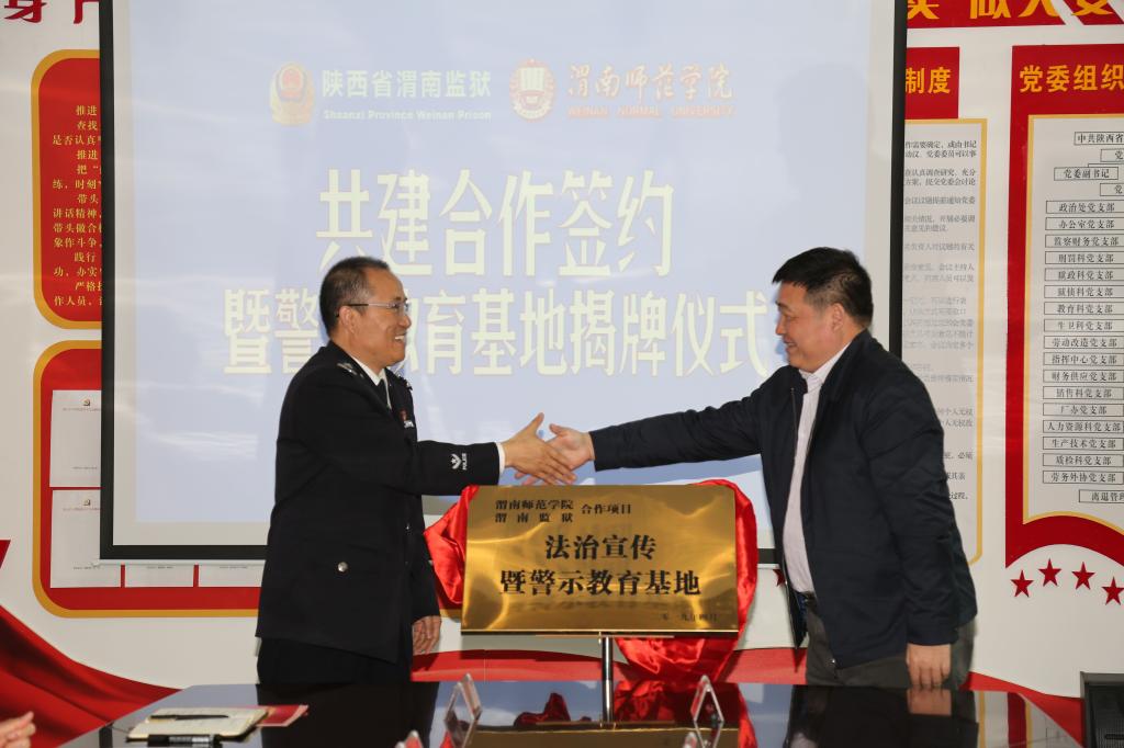 4月12日上午,我校与陕西省渭南监狱共建合作签约暨警示教育基地揭牌仪式在渭南监狱举行。仪式由渭南监狱党委副书记、政委马周平主持。