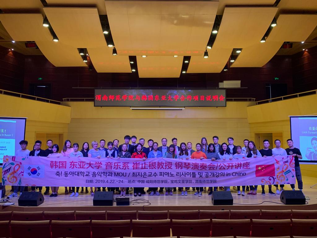 座谈会结束后,东亚大学音乐学院钢琴系崔止银教授在华金音乐厅为我校音乐专业学生举办了一场别开生面的钢琴演奏会和钢琴示范教学课,对我校四名钢琴专业学生的钢琴演奏进行现场点评和指导,深受师生好评。随后,东亚大学国际处金成泰主任对我校与东亚大学开展的“2+2”双学位、“3+1+2”本升硕合作项目做了详细说明,与学生进行现场互动,学生反响良好。最后,崔止银教授对学生寄语,用自己亲身的求学经历告诫学生只有通过自己的不断努力才能获得幸福人生,越奋斗越快乐!