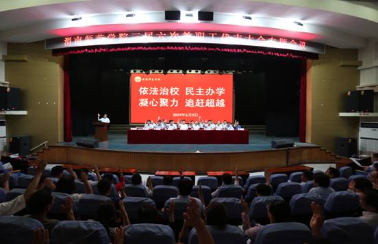 在第二次全体代表会议上,经过举手表决,同意通过《关于学校利用汉马校区与渭南市教育投资发展有限责任公司合作举办附属学校事项的报告》、《关于调整“十三五”事业发展核心指标的说明》。