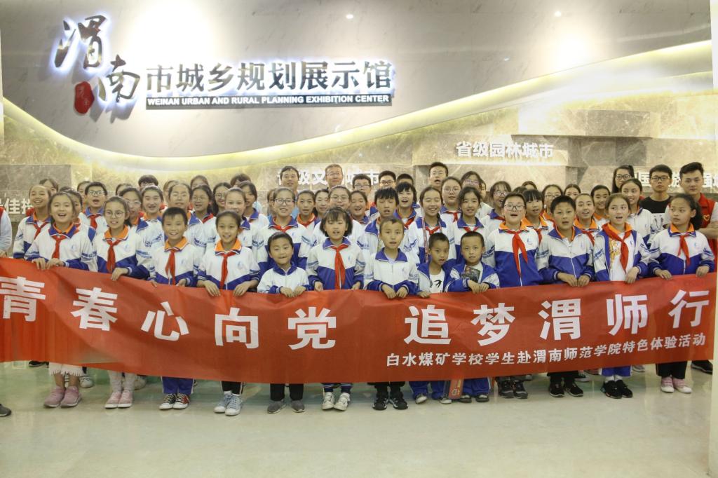 为进一步深化我校结对帮扶白水县成效,持续推进“扶学·扶志”快乐课堂特色支教延伸效果。6月5日,我校团委、扶贫办和白水县教育局、团委举办“青春心向党 追梦渭师行”白水煤矿学校学生赴欧宝娱乐官方app特色体验活动。白水煤矿学校四十六名学生走进渭师开展升国旗、参观校园、观看美术作品展、师生合唱音乐课、参观渭南市博物馆和城乡规划管等活动,体验大学生活、了解家乡变化、感受祖国发展,激发白水小学生努力学习的动力。