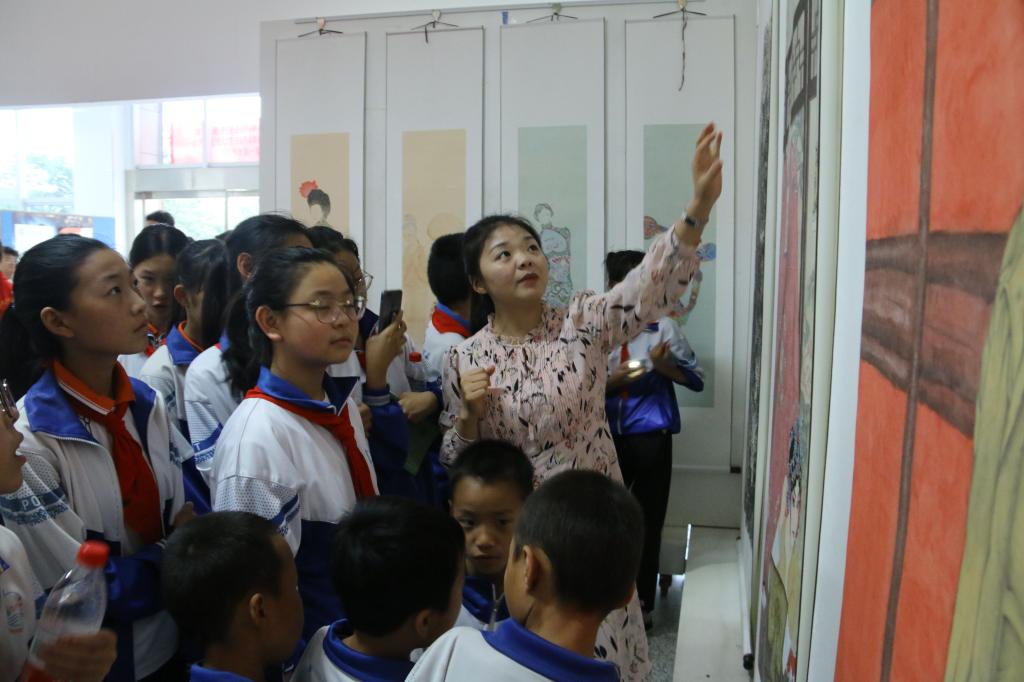 志愿者带领小学生参观我校美术学院毕业生作品展,美术学院师生赠予每位学生一副美术作品,四年级建档立卡学生贺思雨收到作品后激动地说:“我长大也要学习画画,也要像哥哥姐姐们一样办画展”。参观完画展后,小学生们参观了我校合作办学机构莫斯科艺术学院,在钢琴教室大学生为小学生们演奏了《拉德斯基进行曲》,俄罗斯外教伊丽娜·纳格莱特为小学生们演唱咏叹调《意大利女郎在阿尔及尔》和俄罗斯儿童歌曲《蓝色马车》。七年级学生刘欢欢说:“这是我第一次现场听外籍老师唱歌,非常感谢你们提供给我这样一次机会”。