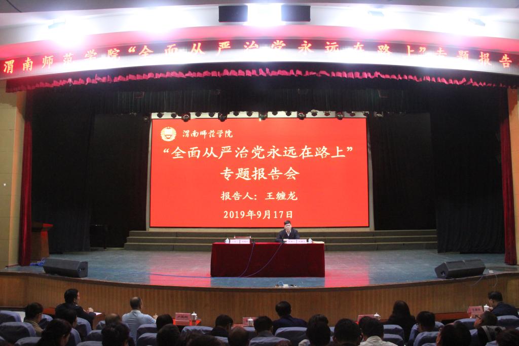 9月17日下午,学校在陶然楼演艺厅举办全面从严治党专题报告会,省纪委监委原案件审理室主任王缠龙应邀为大家作了题为“全面从严治党永远在路上”的专题辅导报告。会议由纪委书记肖耀刚主持。