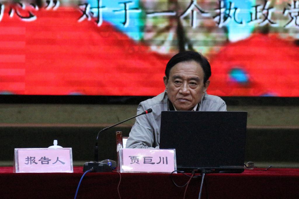 9月18日下午,学校在陶然楼演艺厅举办专题报告会,特邀中共陕西省委党史研究室原副巡视员,中共党史研究员,《习仲勋传》作者,二级教授贾巨川作题为“中国共产党人的初心和使命——走进习仲勋”专题报告。报告会由校纪委书记肖耀刚主持。