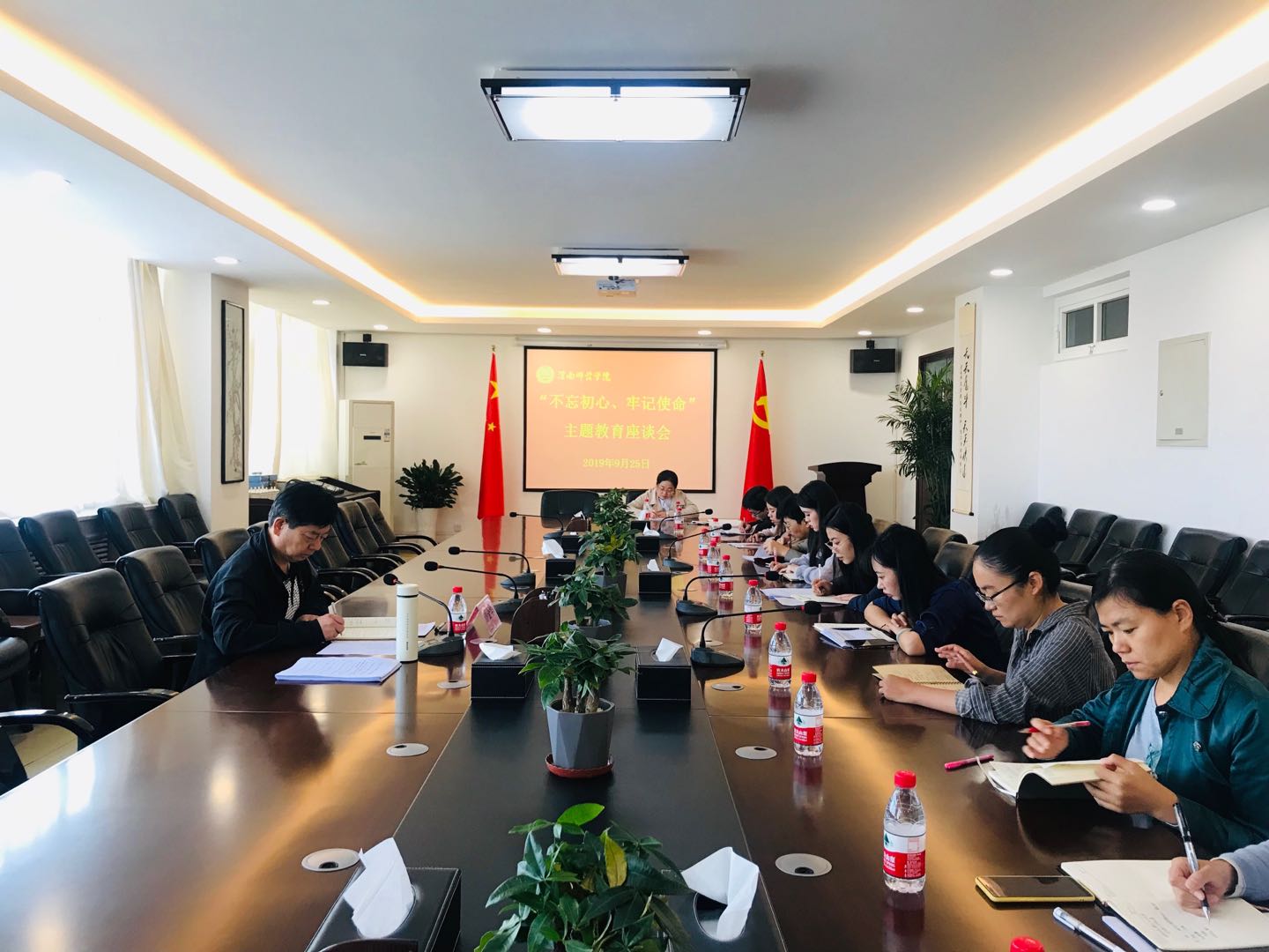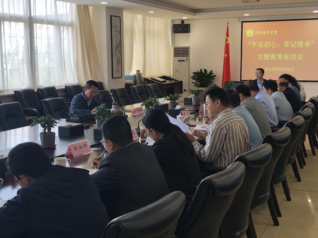教师党员、学生党员代表座谈会上,来自不同二级学院的10名教师党员代表分别从课堂思政、家国情怀、终身学习、榜样意识等方面探讨了教师的初心和使命、责任与担当。并结合个人教学和学校实际就如何做“四有好老师”进行了热烈的讨论,谈了对教师师德师风建设的认识、感受和实践。与会教师表示,在主题教育的洗礼和淬炼下,将更加坚定政治信仰,积极作为,刻苦钻研,勤奋工作,勇于担当,不辜负学校、学生和家长的信任,不辜负这个伟大的时代。5名学生党员代表表示,我校丰富多彩的主题教育活动让学生党员参与度高,通过学习让他们更爱国、更爱党、更爱校,深感责任于心重千金,使命在肩当奋进。