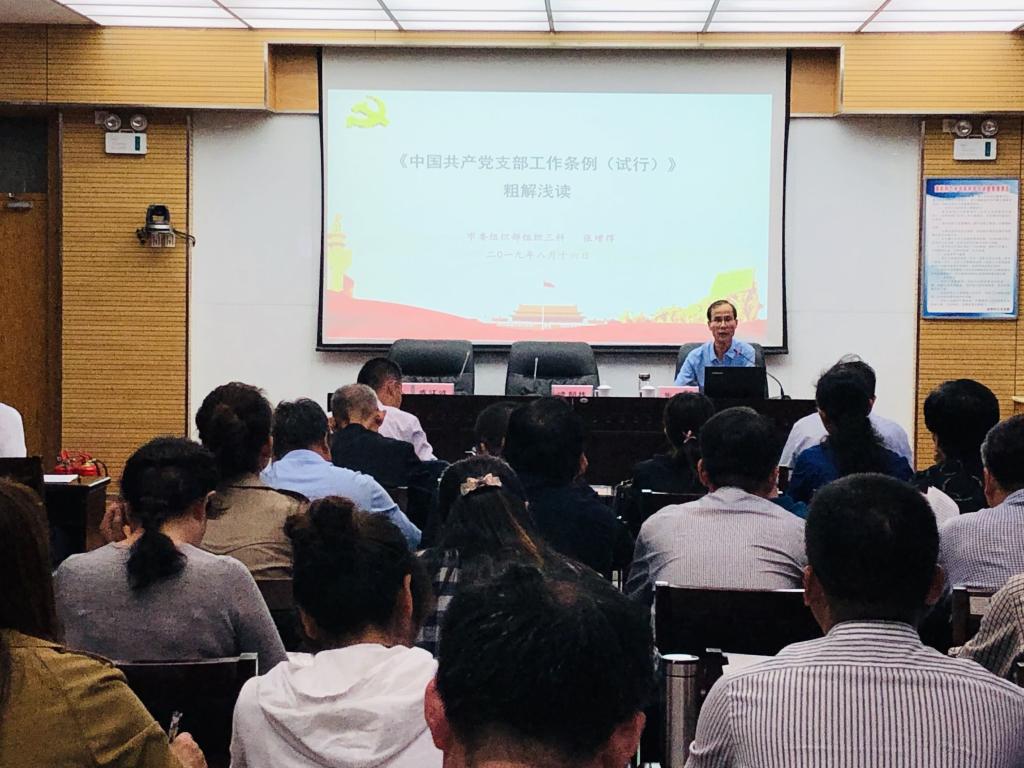 张增辉对《中国共产党支部工作条例(试行)》做了解读。他从为什么、有什么、是什么、抓什么四个方面详细解读了《条例》出台的背景、《条例》的主要内容、党支部工作存在的突出问题以及破解问题的措施和建议。并结合《人民的名义》视频片段说明如何上好一堂有感召力、凝聚力的党课。张增辉的解读深入浅出,图文并茂,分析透彻,让与会的党支部书记更加明确《条例》的主要内容,更加明确了如何做好一名党支部书记。