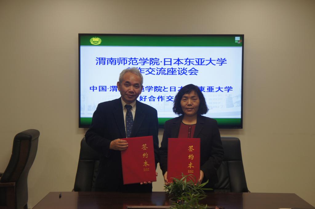 会上,王菊霞代表学校对日本东亚大学校长一行的来访表示热烈的欢迎并介绍了我校教学、科研和对外交流合作等情况。栉田宏治校长介绍了日本东亚大学大学的基本情况、教学资源、优势学科、国际合作等情况。双方就两校之间开展教师培训、日语专业教师在职攻读博士学位、学生短期交换、“3+1+2”本升硕项目和“2+2”双学位项目深入交换意见,并达成初步合作意向。王菊霞还代表学校与日本东亚大学签署学术交流框架协议。两校互赠纪念品、合影留念。(通讯员 贺星蓓 刘新新)