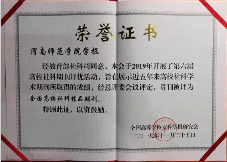 据了解,此次有来自全国千余家高校社科学报参加评选,旨在展示近五年来高校社科学术期刊所取得的成绩。这次获奖,是《欧宝娱乐官方app学报》继2019年“陕西省高校社科学报精品期刊”、“全国教育院校精品期刊”后取得的又一殊荣,标志着《欧宝娱乐官方app学报》在精品办刊道路上迈上一个新台阶。(通讯员 王萍)