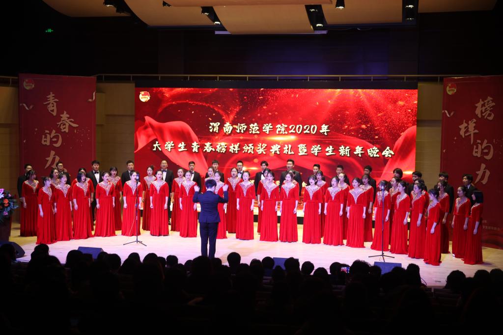 颁奖和晚会围绕“青春的力量”“榜样的力量”和“国家力量”为主旨,活动以年度青春榜样事迹展播、宣读颁奖辞、领导颁奖、获奖榜样谈感受和新年文艺演出等多个环节交错进行,相互照应、相得益彰。由各二级学院学生代表共同参演的充满青春、活泼、向上的热情地舞蹈《青春无畏》拉开帷幕,由各二级学院团总支、各学生组织参演的节目也给大家留下美好印象,《和祖国在一起》《爱的华尔兹》《我爱你中国》《我的祖国》和《那段时光》等体现家国情怀、青春向上和奋进追梦的学生文艺节目,展现出我校普及艺术教育的良好成果。