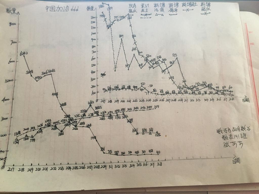 有的克服条件限制手绘图表,有的利用电脑学做统计图,有的学生还发挥想象基于自己的数据采用了视频播报的形式。这样的统计,不仅让学生们了解专业知识的应用,更让他们关心关注疫情,心系一线的抗疫勇士。