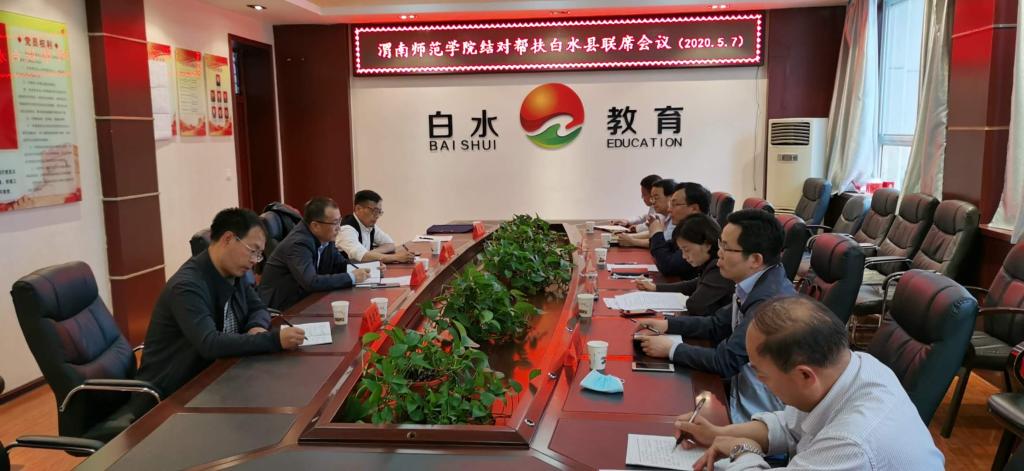 5月7日下午,副校长曹强在后勤服务中心副主任雷建平、美术学院副院长梁卫民、扶贫办公室赵超等人陪同下,赴白水县开展结对帮扶调研工作,并在白水县教育局召开结对帮扶联席会议。白水县委常委、宣传部部长刘杰,白水县教育局党组书记刘金房,白水县文化旅游局副局长张晓文等有关领导出席会议,白水县人民政府副县长胡小英主持会议。