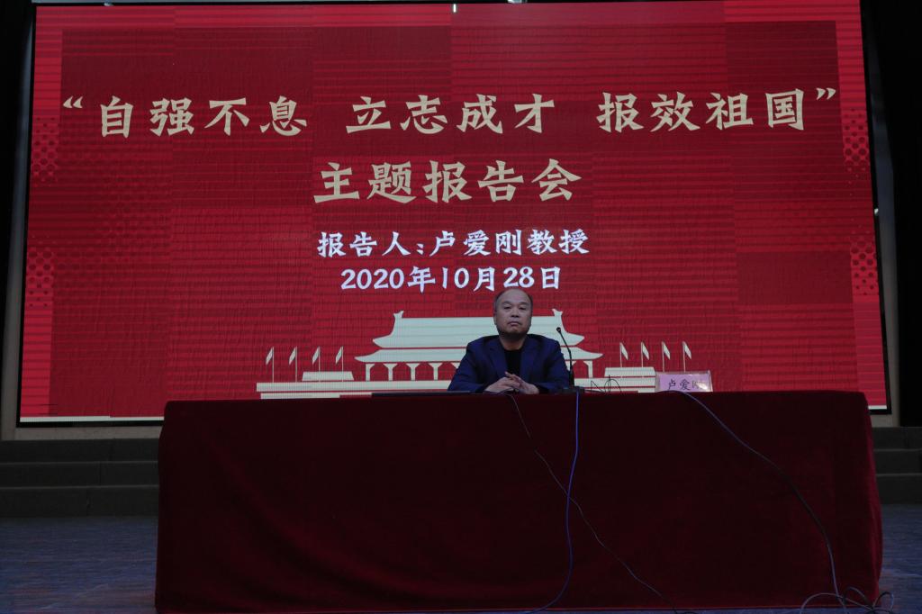 10月28日晚,副校长卢爱刚为外国语学院师生作了一场“自强不息 立志成才 报效祖国”主题报告会。外国语学院副院长赵爱莉主持,学院2020级新生及辅导员参加报告会。