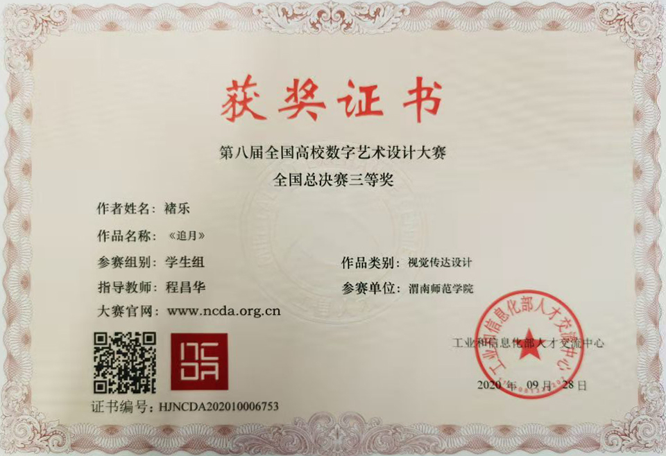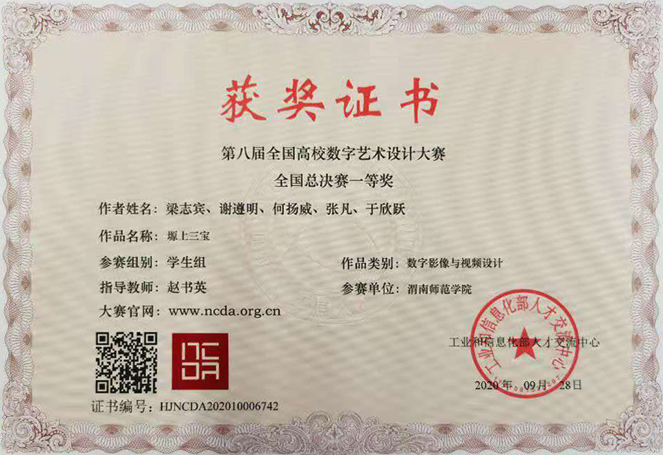 11月14日,第八届全国高校数字艺术设计大赛颁奖典礼在浙江嘉兴举行,我校传媒学院学子获得全国总决赛一、二、三等奖各1项。