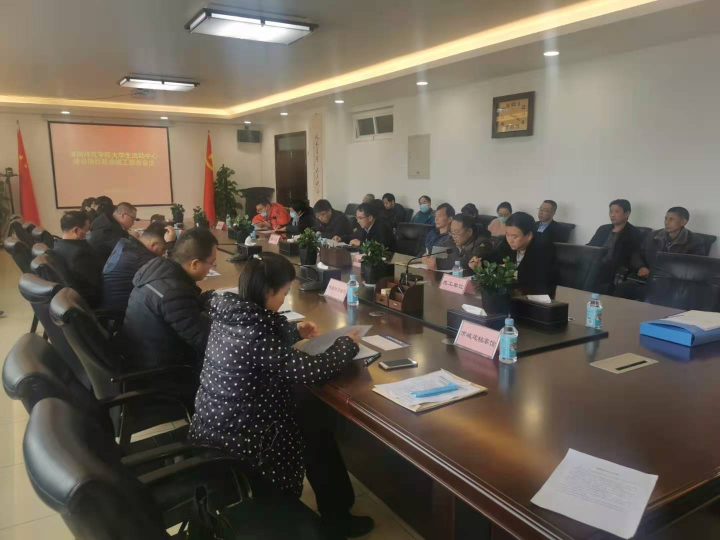 渭南市住房和城乡建设局牵头,市自然资源和规划局、市人民防空办公室、市建设工程质量监督中心站、城建档案馆进行联合验收。机械工业勘察设计研究院有限公司、西安建筑科技大学设计研究院、长安大学工程设计研究院、陕西知含项目管理有限公司、晨悦项目管理有限公司、陕西建工第六建设集团公司、陕西建工第四建设集团公司、陕西北斗恒星科技发展有限公司、西安华陆建设集团公司相关项目负责人及专业分包施工单位相关人员参加会议。副校长韩小卫出席会议。