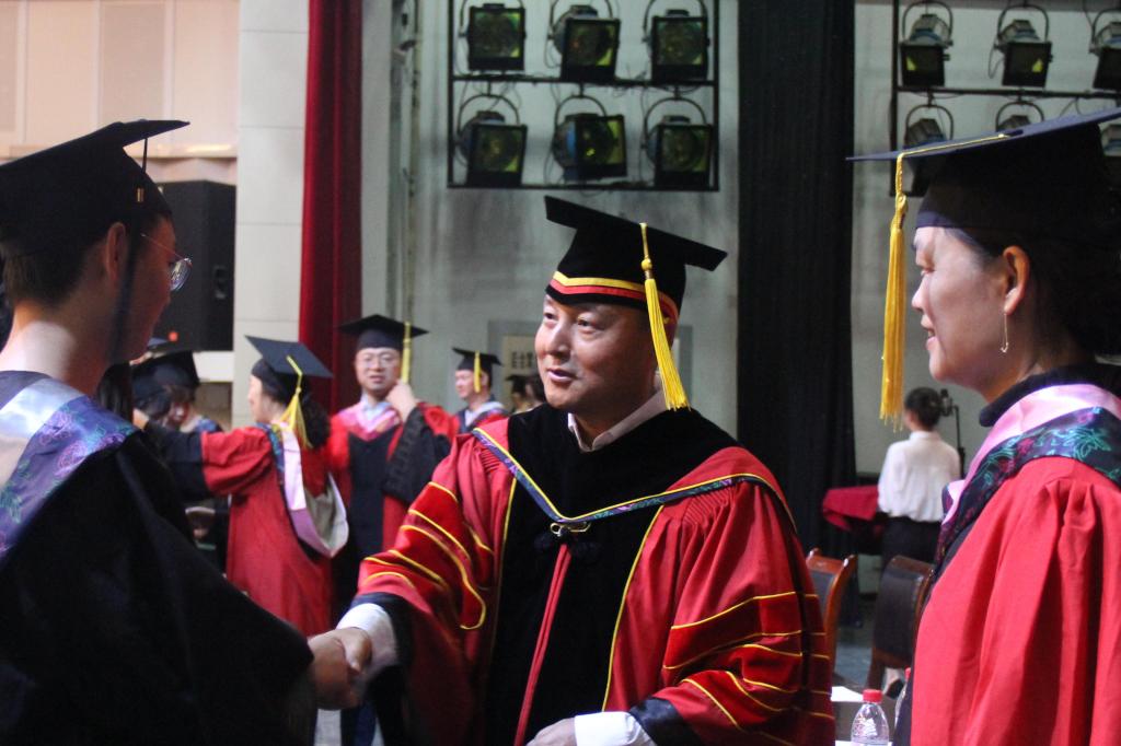 赵曼、梁燕玲、李西彩、杨方琦为学院获得学位的毕业生拨穗正冠、颁发证书,并合影留念,祝贺他们顺利完成学业。