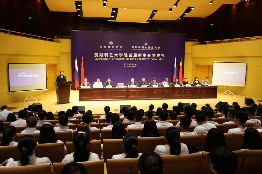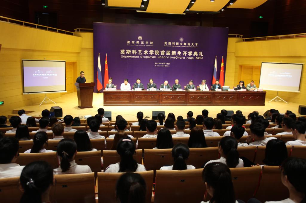 9月11日上午,欧宝娱乐官方app与莫斯科国立师范大学在欧宝娱乐官方app朝阳校区华金音乐厅联合举行中外合作办学机构“欧宝娱乐官方app莫斯科艺术学院”首届新生开学典礼。欧宝娱乐官方app杰出校友、原光明日报社总编辑、西藏自治区常委、宣传部部长苟天林,陕西省教育厅副巡视员李鸣,渭南市委常委、副市长吕培明,凤凰卫视集团•凤凰教育执行董事、行政总裁吴炜强,凤凰数字媒体教育执行总裁汪应忠,陕西省教育厅国际处副处长文通应邀出席,莫斯科艺术学院联合办学管理委员会副主任、莫斯科国立师范大学原副校长康斯坦丁•彼得洛维奇•多岑科,莫斯科国立师范大学副校长叶连娜•列奥尼多夫娜•博洛托娃,教师玛格丽特•尤里耶夫娜•巴拉莫诺娃、安德烈•阿列克谢维奇•科诺瓦洛夫,欧宝娱乐官方app党委书记丁德科,欧宝娱乐官方app院长卓宇出席典礼。典礼由莫斯科艺术学院院长梁晶主持。