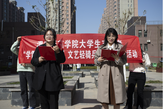 为深入学习宣传贯彻党的二十大精神,贯彻落实习近平总书记对深入开展学雷锋活动作出的重要指示精神,积极投入到渭南市创建全国文明城市工作之中,我校组织大学生志愿者组成“文艺轻骑兵”小分队共计千人次,广泛深入渭南市临渭区6个街道办的108个社区网格小区,将精彩的文艺演出送到了居民家门口。