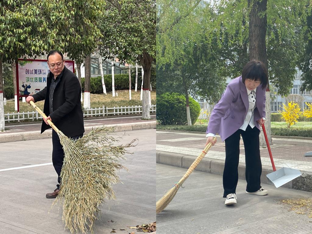 根据学校持续深入做好创建全国文明城市和巩固国家卫生城市的工作要求,全体师生积极响应、认真参与,根据各自负责的区域认真投入到卫生清扫当中,充分发扬了“团结、奋斗”的中华传统美德。大家分工协作、井然有序,忙碌的身影形成了一道独特的风景线。经过两个多小时的细致清扫,枯枝落叶、杂草杂物等垃圾被一扫而空,清洁区域焕然一新、整洁有序。