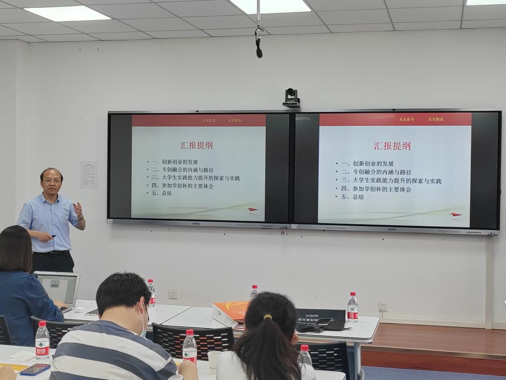 竞赛期间,陕西省高校数智双创师资交流会同时召开。我校经济管理学院李富荣教授作了题为《专创融合与大学生实践能力提升探索与实践》专题报告,与全省20余所高校的经管学院领导、双创课程建设负责人、双创赛事负责人及骨干教师分享交流。