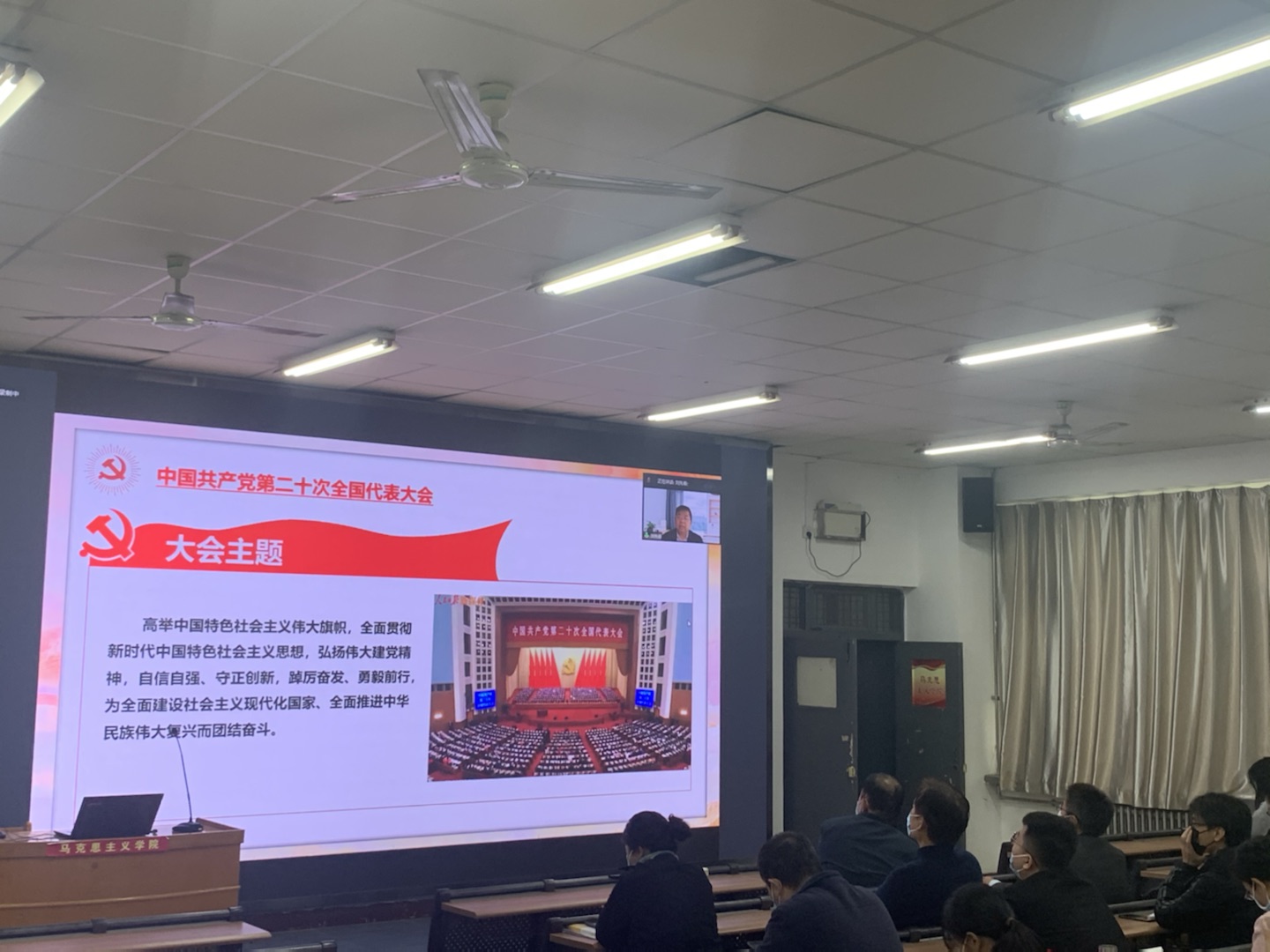 此次活动由党委宣传部主办,马克思主义学院承办,是我校学习宣传贯彻党的二十大精神的首场报告会,报告会由马克思主义学院院长张萍主持,以线上宣讲,机关党委、各党总支和直属党支部线下组织集中观看的形式进行。(通讯员 赵国峰 石明   审核人 李明敏 赵国峰)