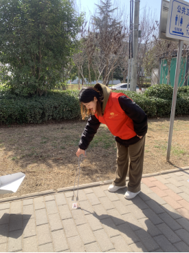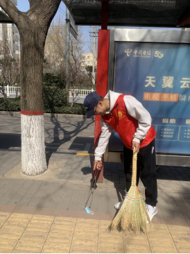 活动中,志愿者们秉承着不怕脏、不怕累的精神,手持垃圾钳、垃圾袋等工具,分工协作,沿着校门两侧细致清理垃圾。