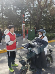 3月3日,体育学院组织志愿者在学校北门外十字路口进行文明劝导和垃圾清理活动。