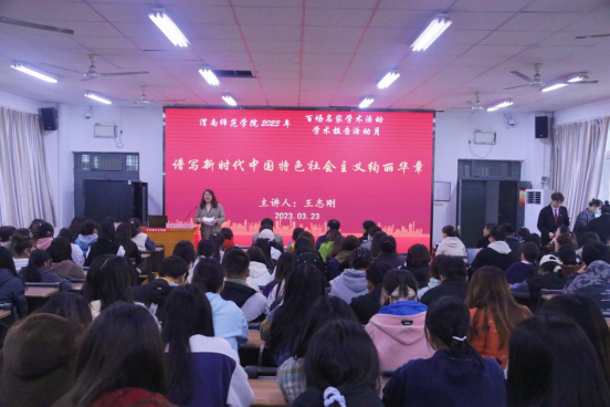 3月23日下午,马克思主义学院“欧宝娱乐官方app2023年百场名家学术活动·学术报告活动月”第一场讲座在朝阳校区博识楼思政3D虚拟仿真实践中心(1101)举行。讲座邀请西安工程大学马克思主义学院院长、硕士生导师王志刚教授作“谱写新时代中国特色社会主义绚丽华章”专题报告。马克思主义学院青年教师代表、思想政治教育专业、中国共产党历史专业学生代表150余人参加报告。本次报告由欧宝娱乐官方app科研处、欧宝娱乐官方app社科联主办,由欧宝娱乐官方app马克思主义学院、陕西省马克思主义大众化基地承办,马克思主义学院院长张萍教授主持。