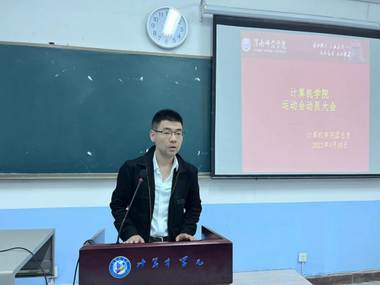 4月10日下午,计算机学院在同心楼5313教室举行第八届学生分会全干会暨2023年春季运动会动员大会。学院学工办副主任李雷玮、团总支书记张雪轲、第八届学生分会主席团、各部部长及干事代表参加会议。会议由团总支副书记孙悦主持。