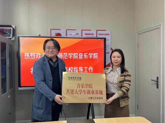 4月19日下午,音乐学院党总支书记白锐、副书记杨帆、学工办副主任张燕、毕业班辅导员雷晨琛一行前往渭南市临渭区云尚月亮宫艺术学校开展调研,签订共建大学生就业基地协议。