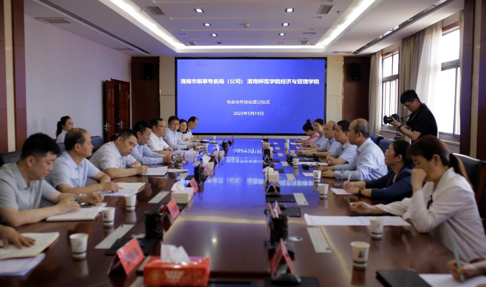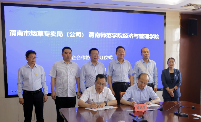 5月19日下午,我校经济与管理学院与渭南市烟草专卖局(公司)在烟草专卖局(公司)举行校企合作协议签约仪式。渭南市烟草专卖局(公司)副经理贺会彬主持签约仪式,我校党委副书记、纪委书记、监察专员肖耀刚出席活动并讲话。