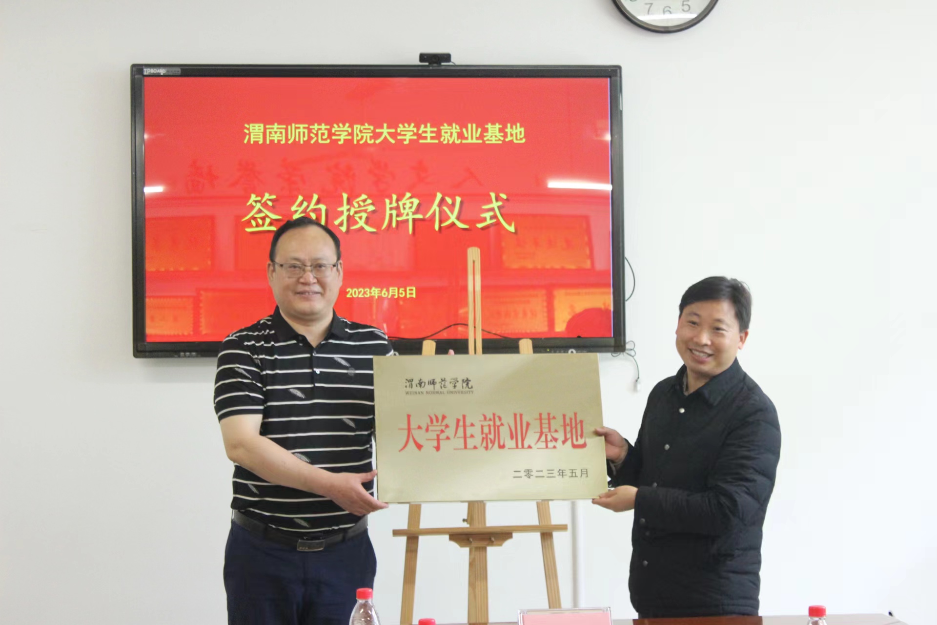 人文学院党总支副书记、副院长张晶与陕西省汉语国际教育研究会签订了《共建大学生就业基地协议书》,党总支书记李三岗授“大学生就业基地牌匾”。副院长雷炳锋与陕西省汉语国际教育研究会签订了《教育实习基地共建协议书》,延慧授“教育实习基地牌匾”。