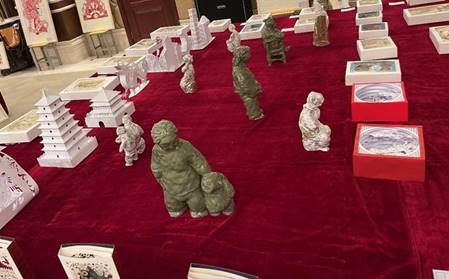 “泥塑蕴匠心”展示区,展出空心泥塑作品8件,由我院客座教授、国家二级工艺美术大师王又凯老师完创作成,作品以熟悉的生活为创作源泉,呈现出浓郁、粗狂的西北风格,人物形象各异、大胆夸张、力求传神,反映现代人积极向上的精神风貌。