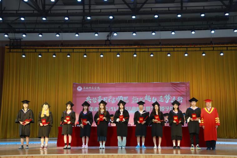 典礼在庄严的国歌声中拉开序幕。副院长石海彬宣读《美术学院2023届毕业生毕业资格审核、学位授予资格审核结果》。副院长刘涌涛宣读《欧宝娱乐官方app美术学院关于表彰院级优秀毕业生和优秀学生干部的决定》《欧宝娱乐官方app美术学院关于表彰团总支学生分会优秀学生干事的决定》。