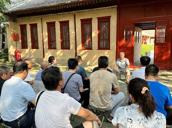 在渭华起义旧址,党总支专门邀请到在渭华起义中担任刘志丹同志侦察参谋的陈祖舜的嫡孙陈军红老师,他通过爷爷的讲述和回忆录,为全体党员讲述了渭华起义中刘志丹同志的革命故事,特别是为了躲避追捕,刘志丹同志和陈祖舜同志翻山越岭、化妆讨饭、夜间背靠背席地而睡,为了安全起见,有时一个晚上还要更换六七个地方;80多岁的陈祖舜因为疼爱的孙子坐在了《共产党宣言》上狠狠打了他一巴掌的故事,为我们展现了当年一幕幕感人至深的革命场景,让我们真切地感受到先烈们坚定地马克思主义信仰和大无畏的革命精神。